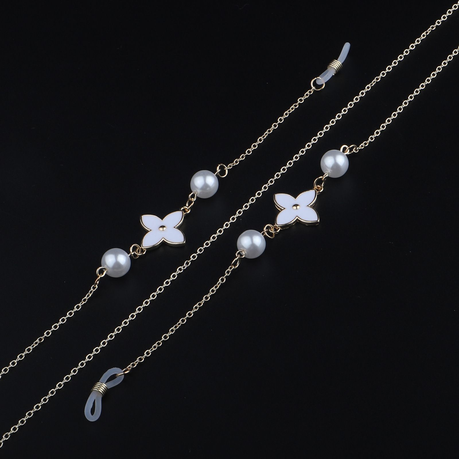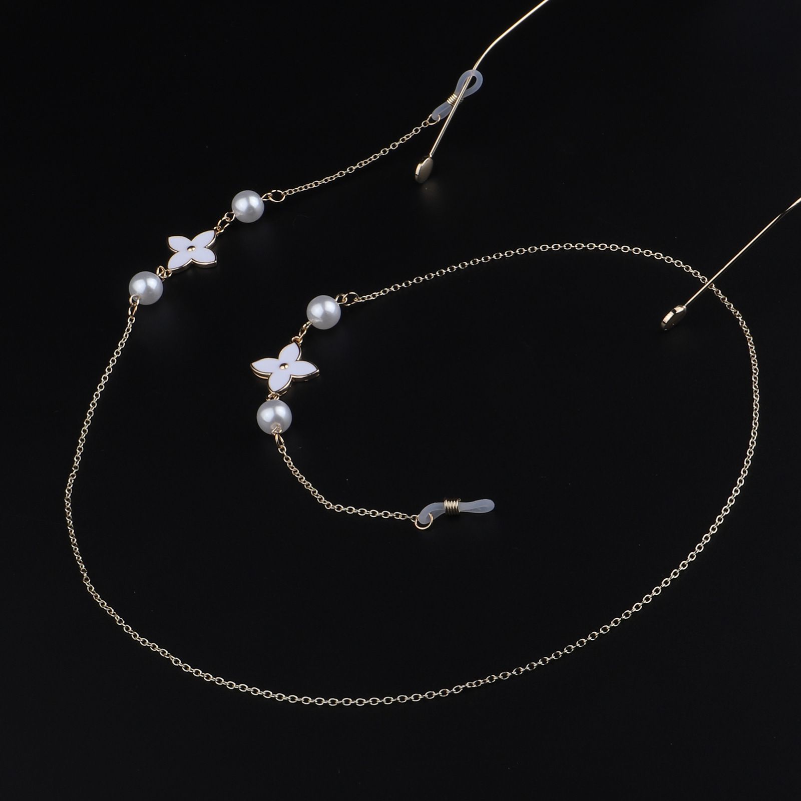Gold-colored metal non-slip chain, with white pearl flower, for glasses and masks GL929