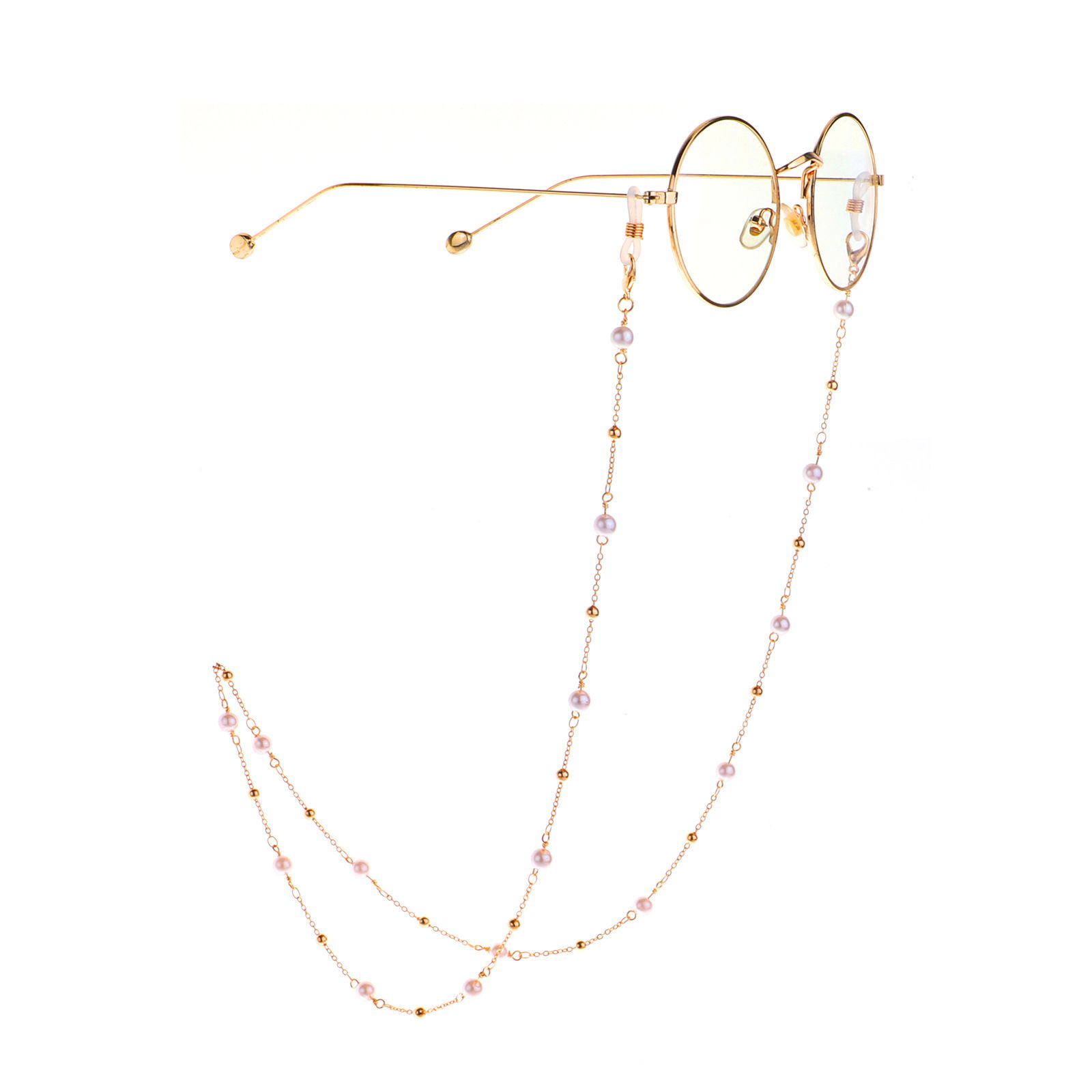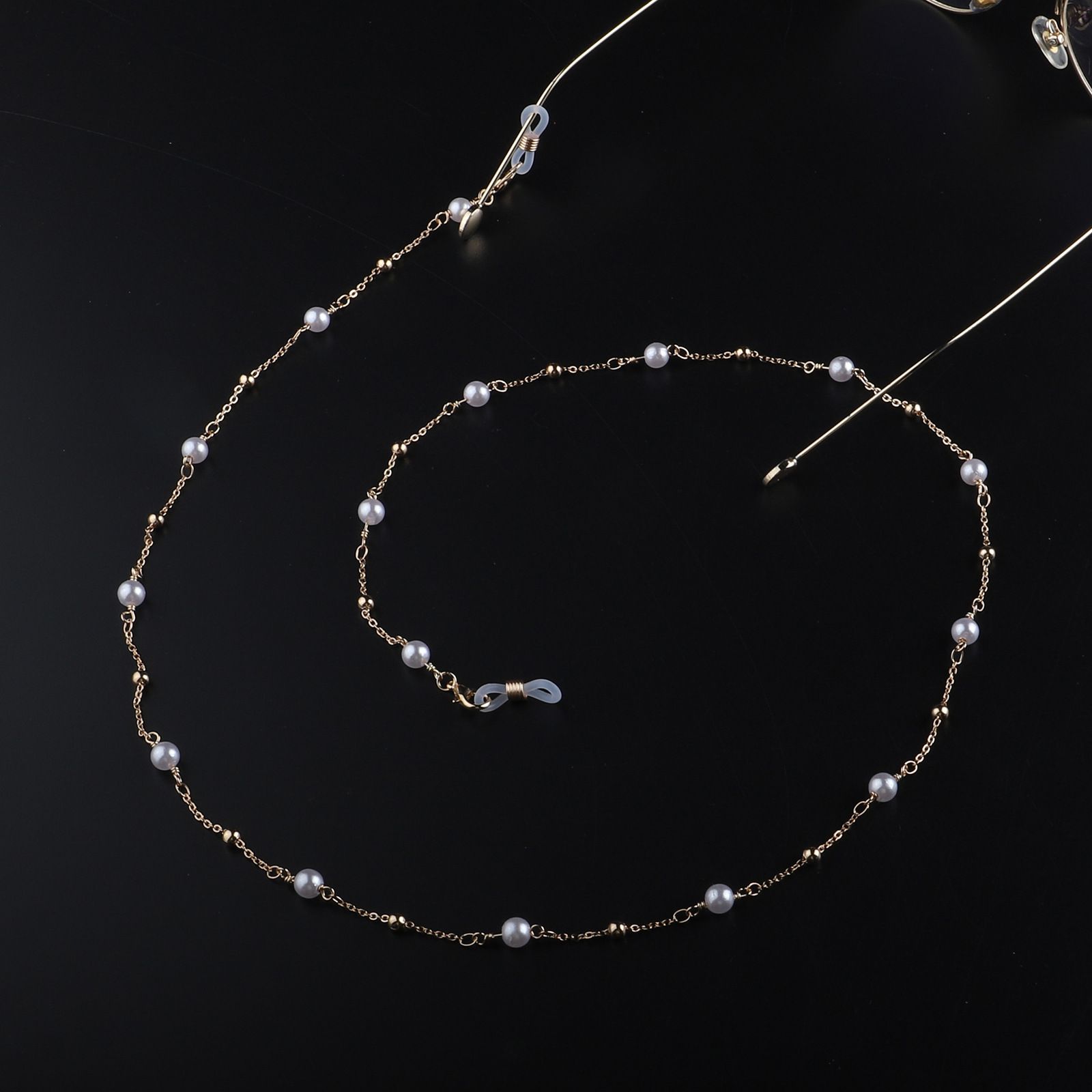 Gold-colored metal non-slip chain, with pearl bead, for glasses and masks GL946