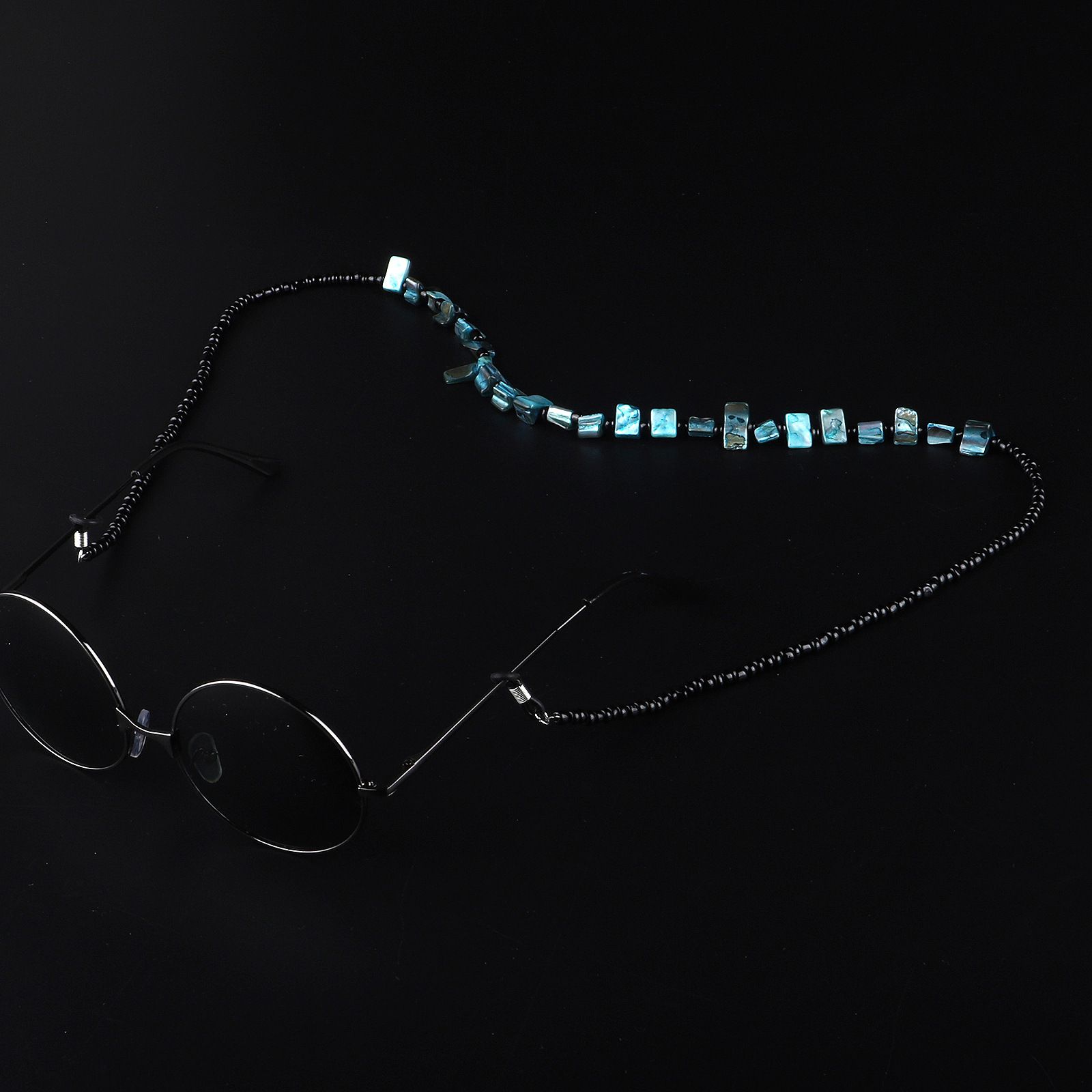 Silver-colored metal non-slip chain, with black beads and color shell, for glasses and masks GL961