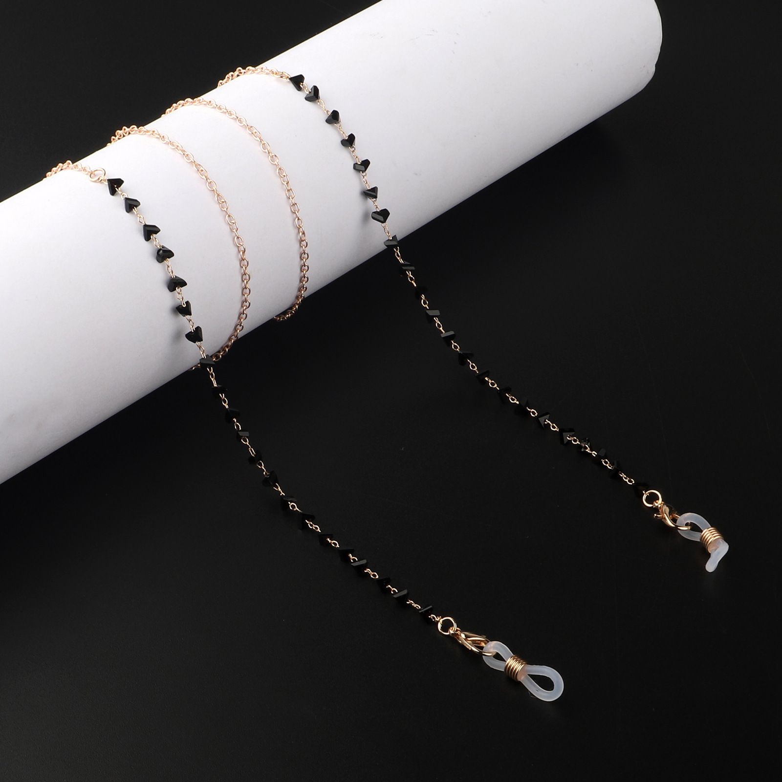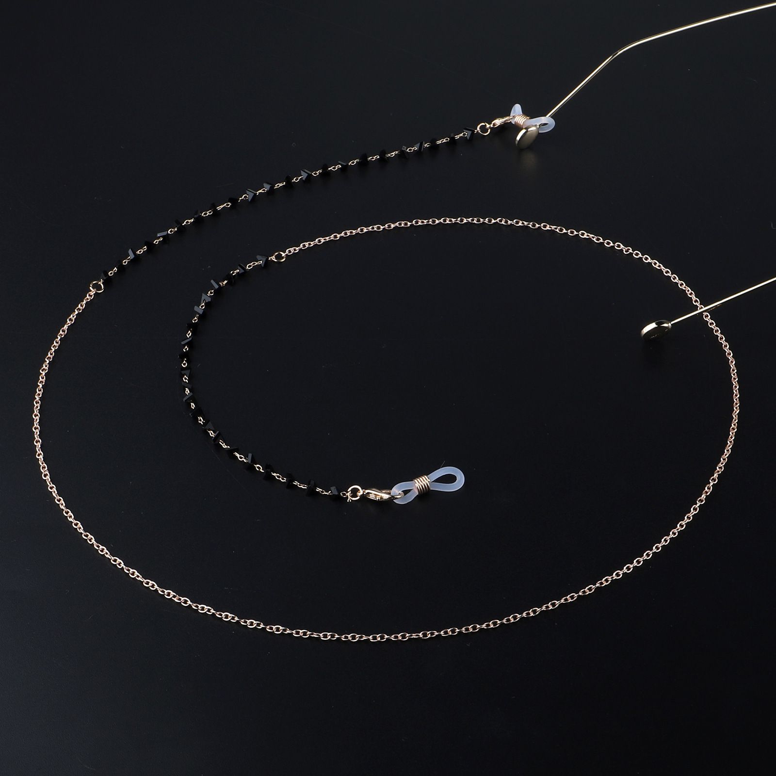 Gold-colored metal non-slip chain, with black triangle crystal, for glasses and masks GL976