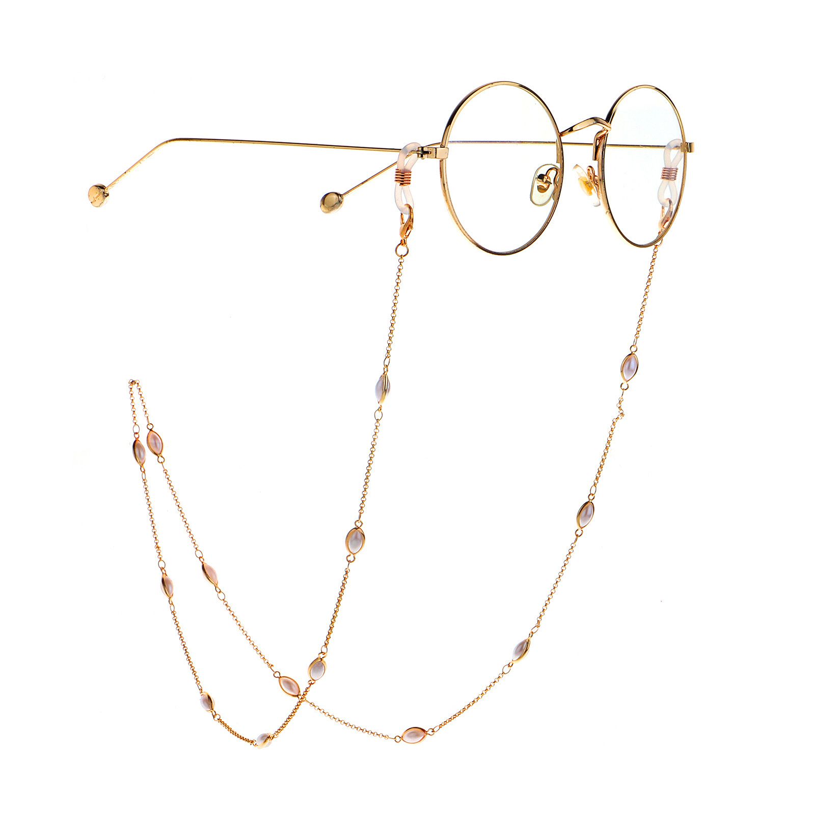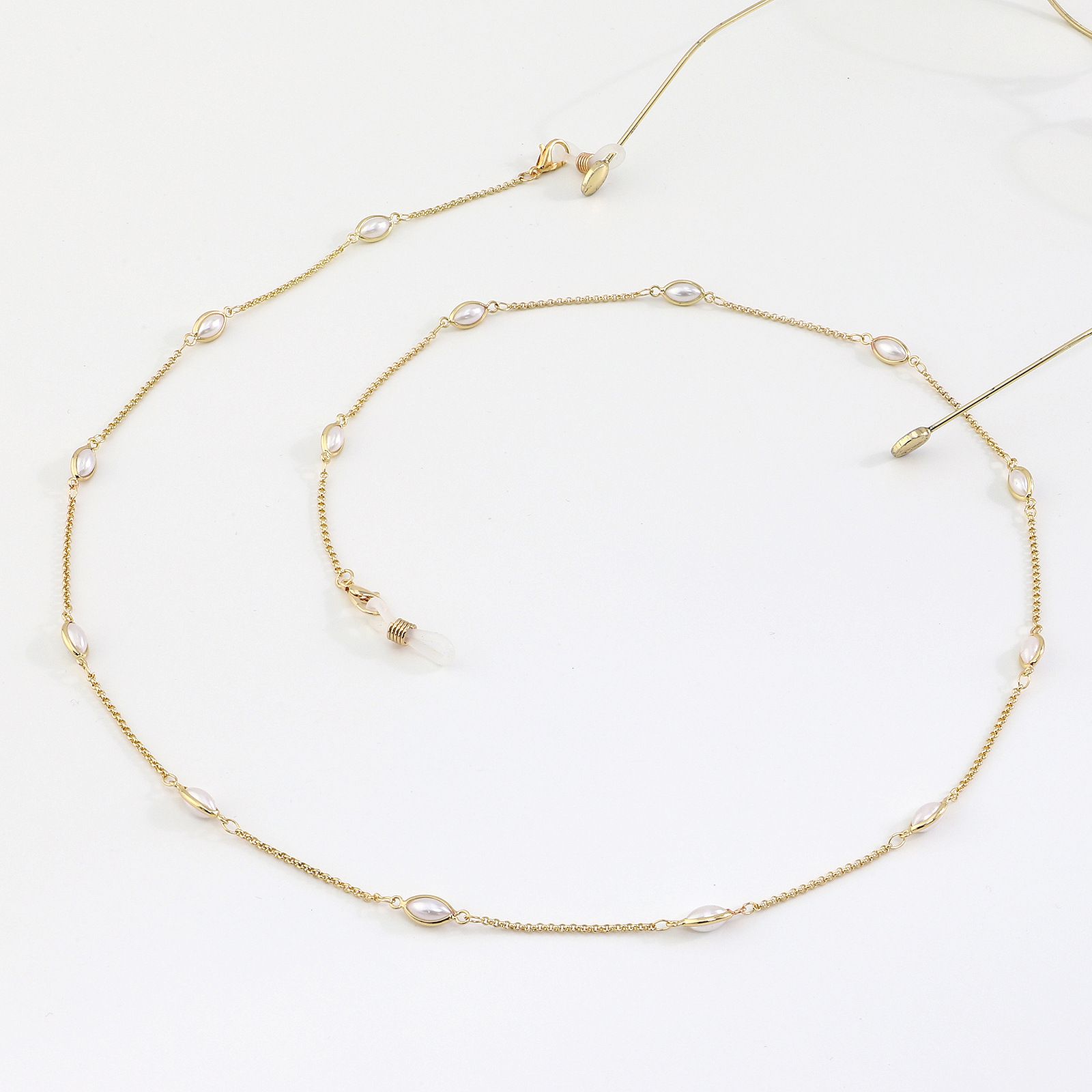 Gold-colored metal non-slip chain, with oval pearl, for glasses and masks GL992