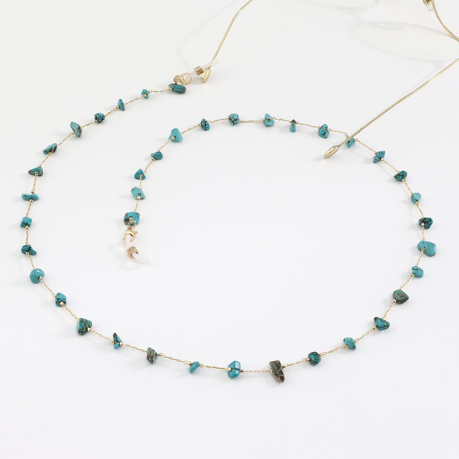 Metal non-slip chain gold, with natural turquoise, for glasses and masks GL996