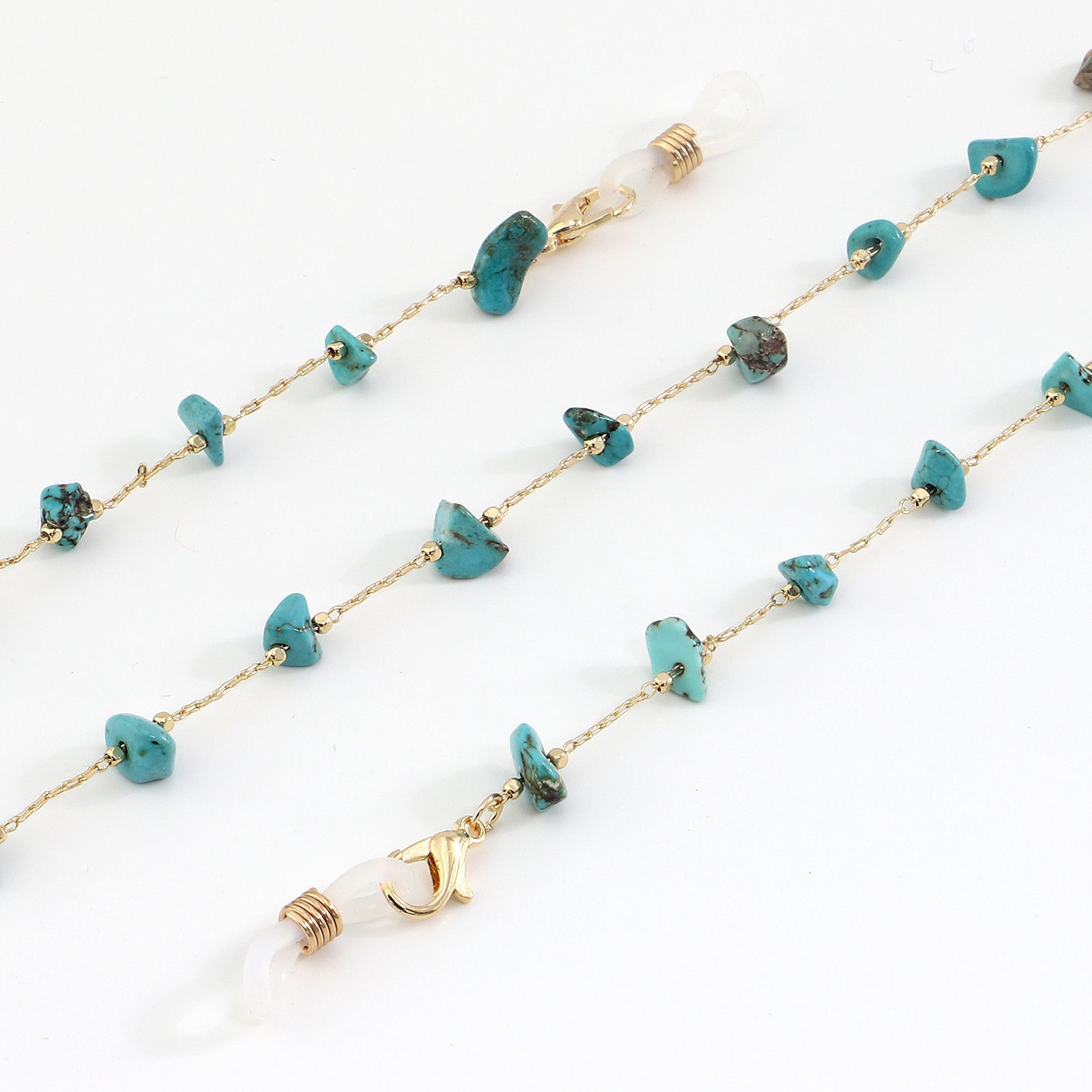 Metal non-slip chain gold, with natural turquoise, for glasses and masks GL996 GL996 mix 混 - ¥ 16.80 В наличии