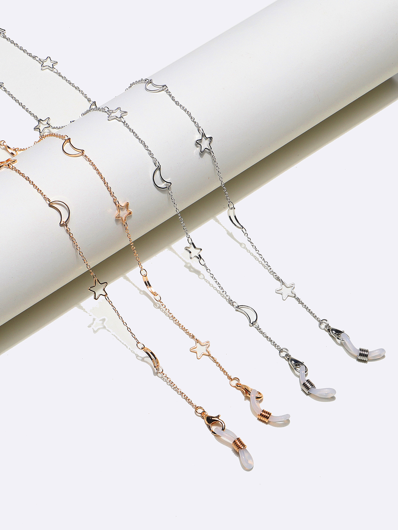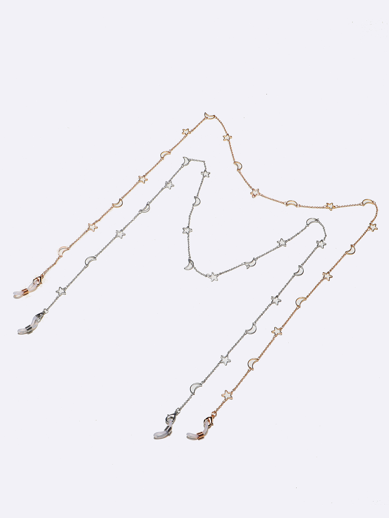 Set of two gold and silver glasses chain with hollow moons and stars GM063(1)