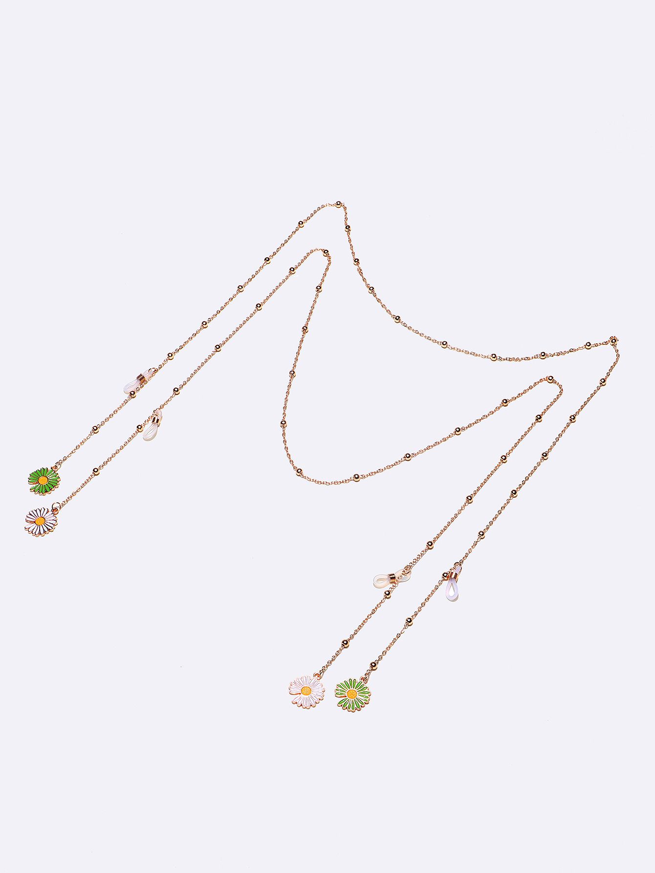 Metal non-slip chain gold, 2-piece set with white and green daisy, for glasses and masks GM100