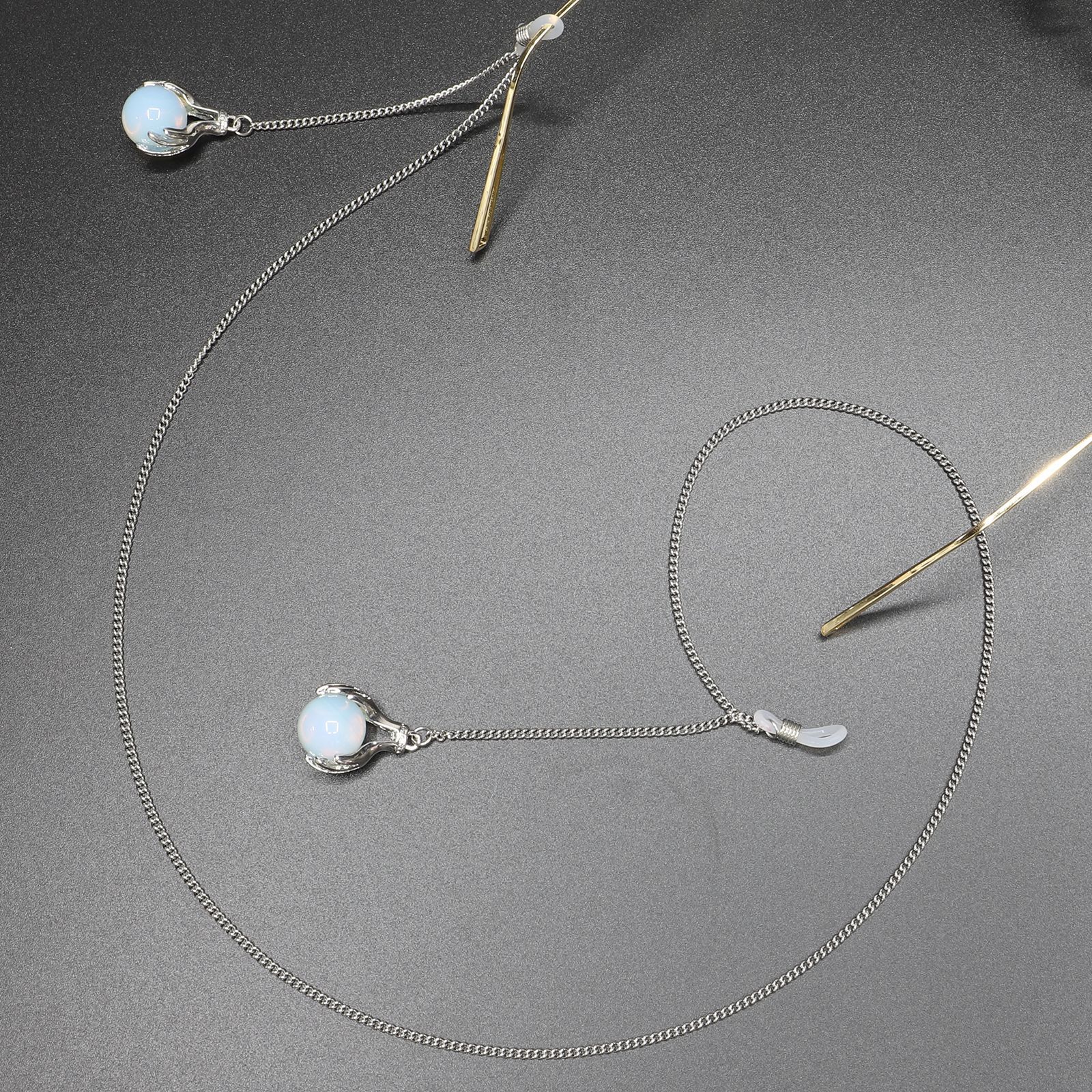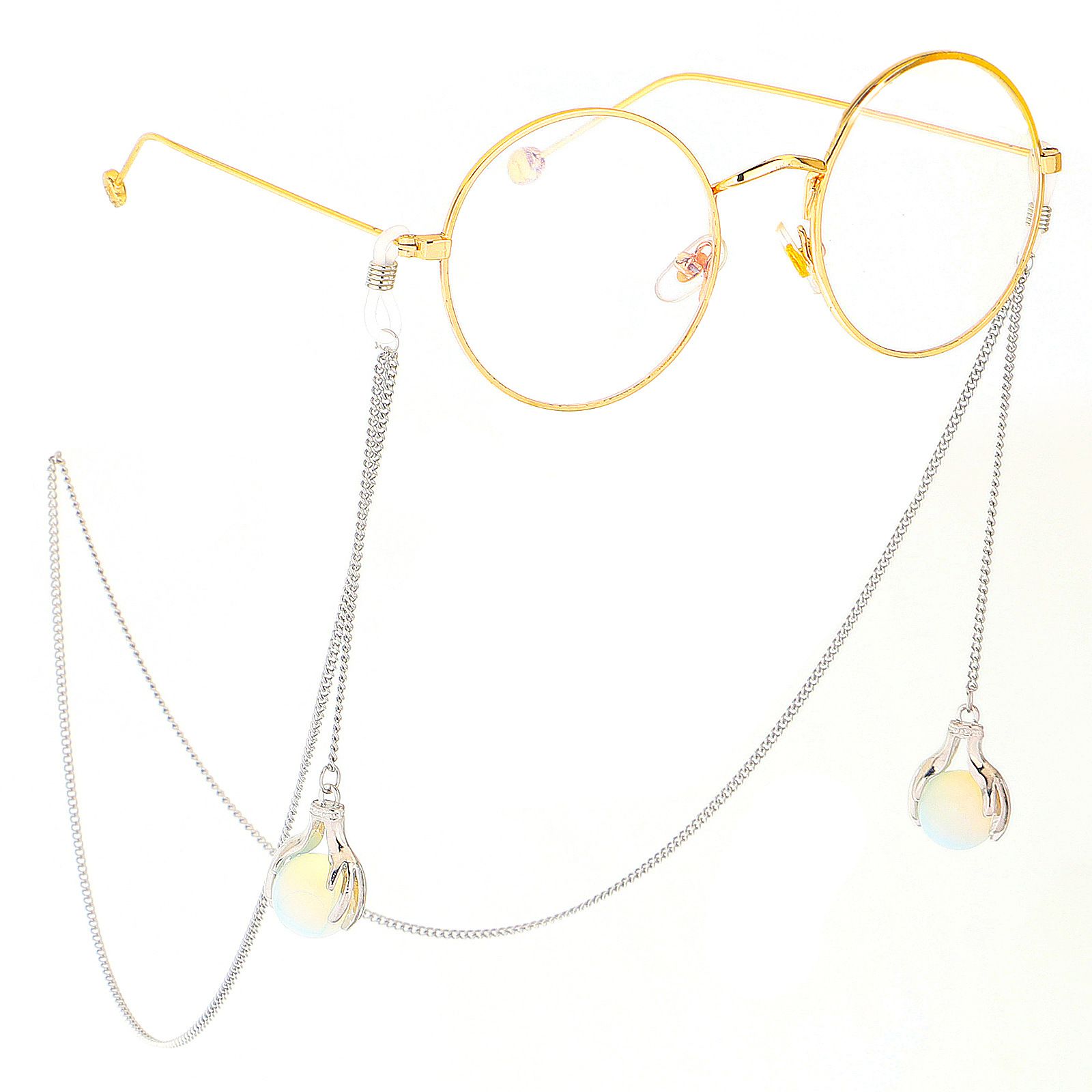 Metal non-slip silver chain, with opal pendant, for glasses and masks GS022