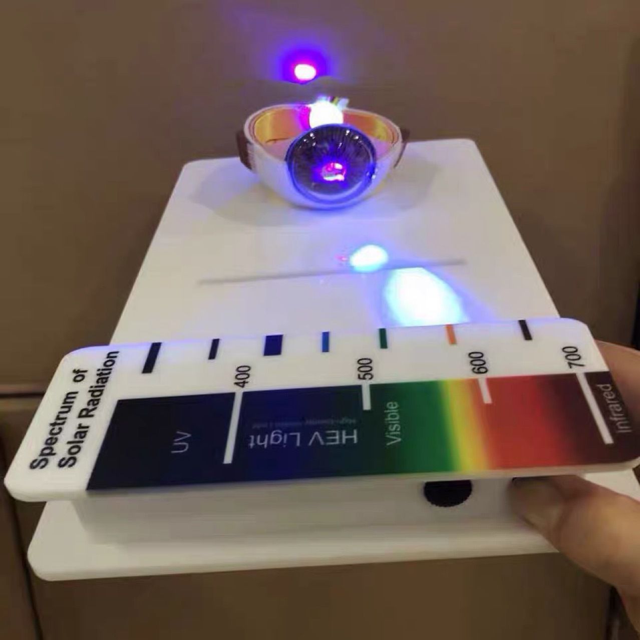 Универсальный тестер позволит Вам провести контроль линз на пропускание ультрафиолетового излучения и проверку линз на наличие покрытия защищающего от синего света.
