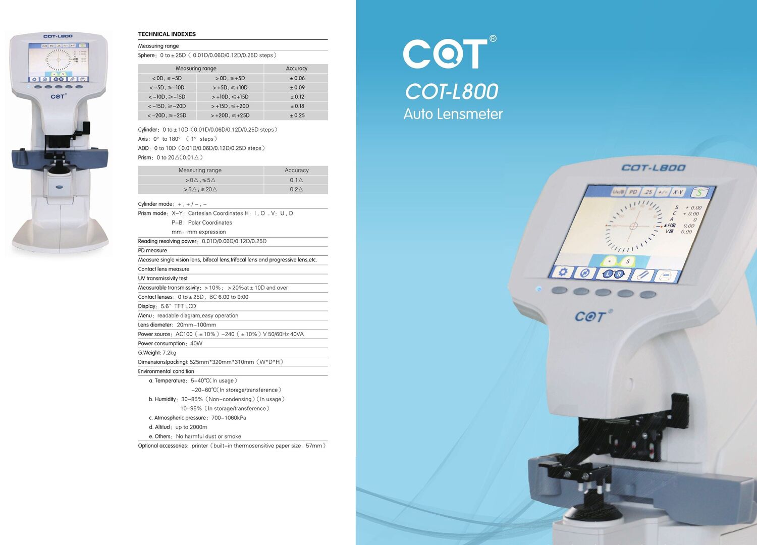 Особенности диоптриметра COT-L800: