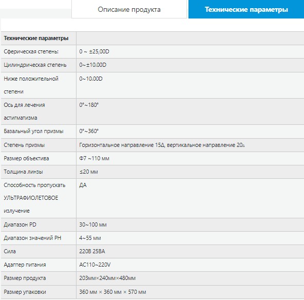 - Степень призмы: горизонтальное направление - 15Δ, вертикальное направление - 20Δ