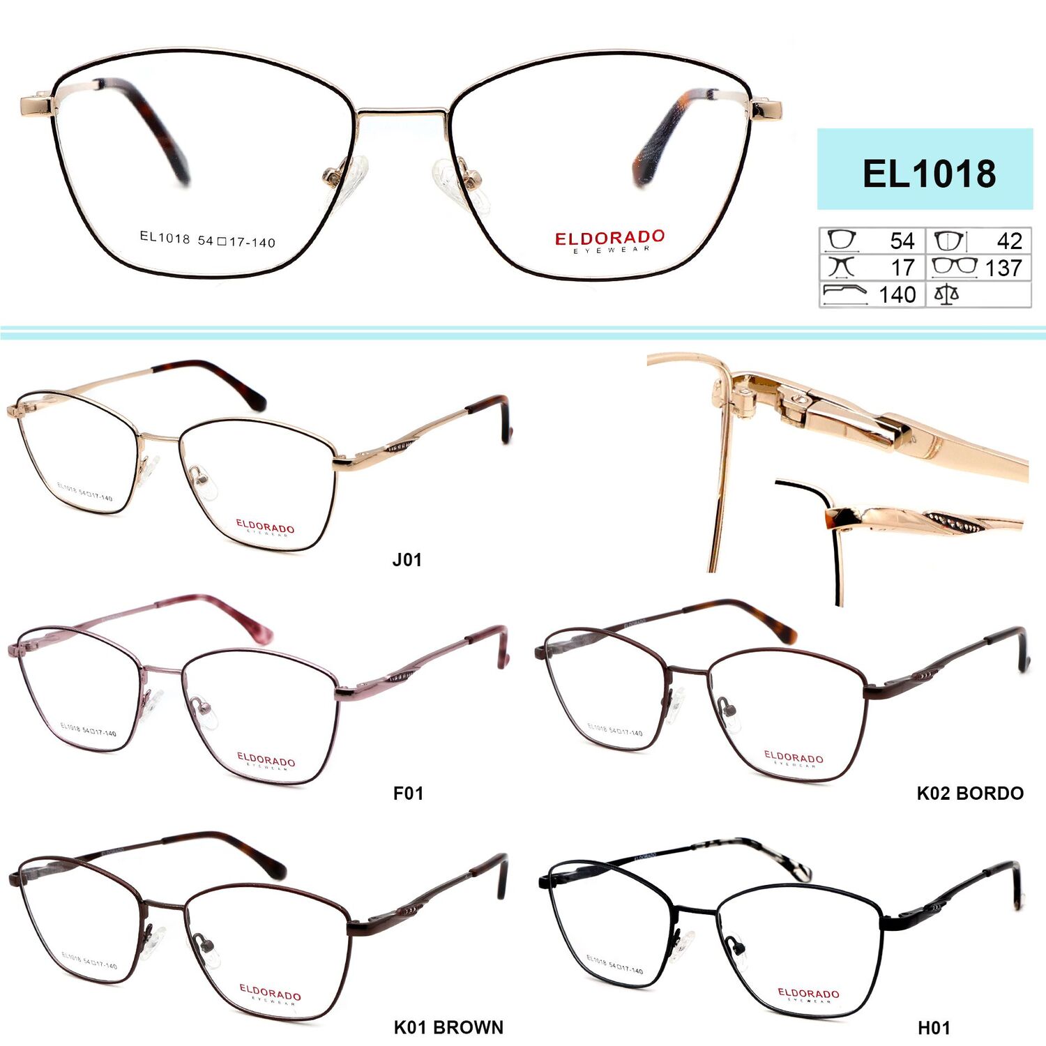 Women's metal frame Eldorado with rhinestones on temples EL1018