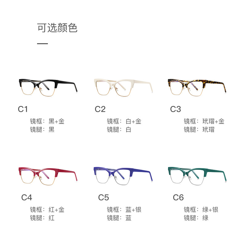 - Temple material: TR90 plastic, metal