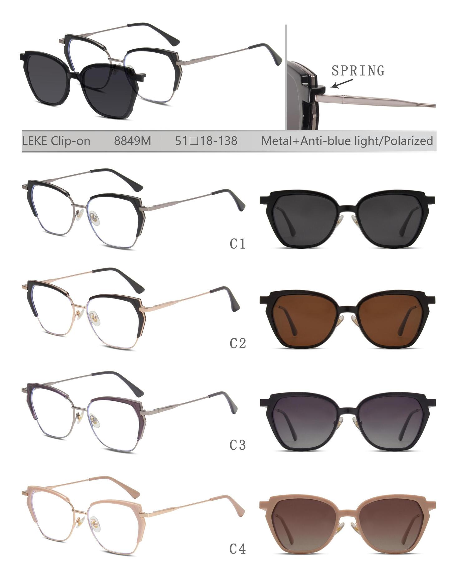 Metal eyeglasses frame with blue ray cut protection, with spring hinges + sun protection polarized clip-on Leke LK8849M