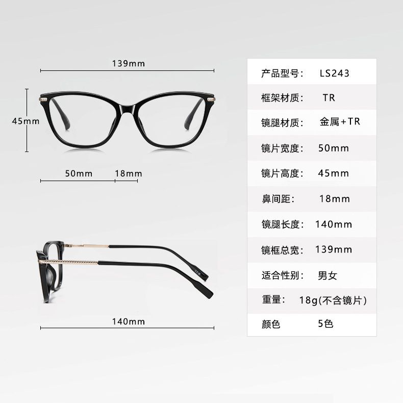 Plastic women's TR90 + metal frame for glasses with UV and Blue Ray Cut protection More LS243
