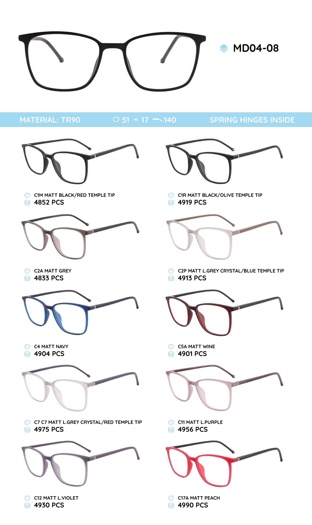 TR-90 plastic frames for glasses MD04-08