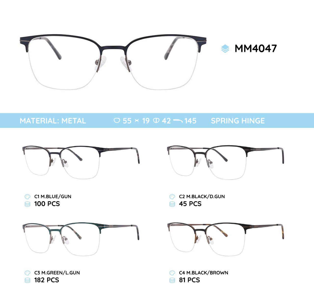 Metal frames for glasses. The material is stainless steel. The frames keep their shape well, at the same time they are flexible. High quality. Frames have good tactile properties and resistant to damage, they are lightweight and hypoallergenic. Many of models are decorated with rhinestones, have elegant temples and flex hinges. Fashionable design. This frames collection of high quality, passes piece control. In our store goods of this category have a low price for wholesale. European Conformity.