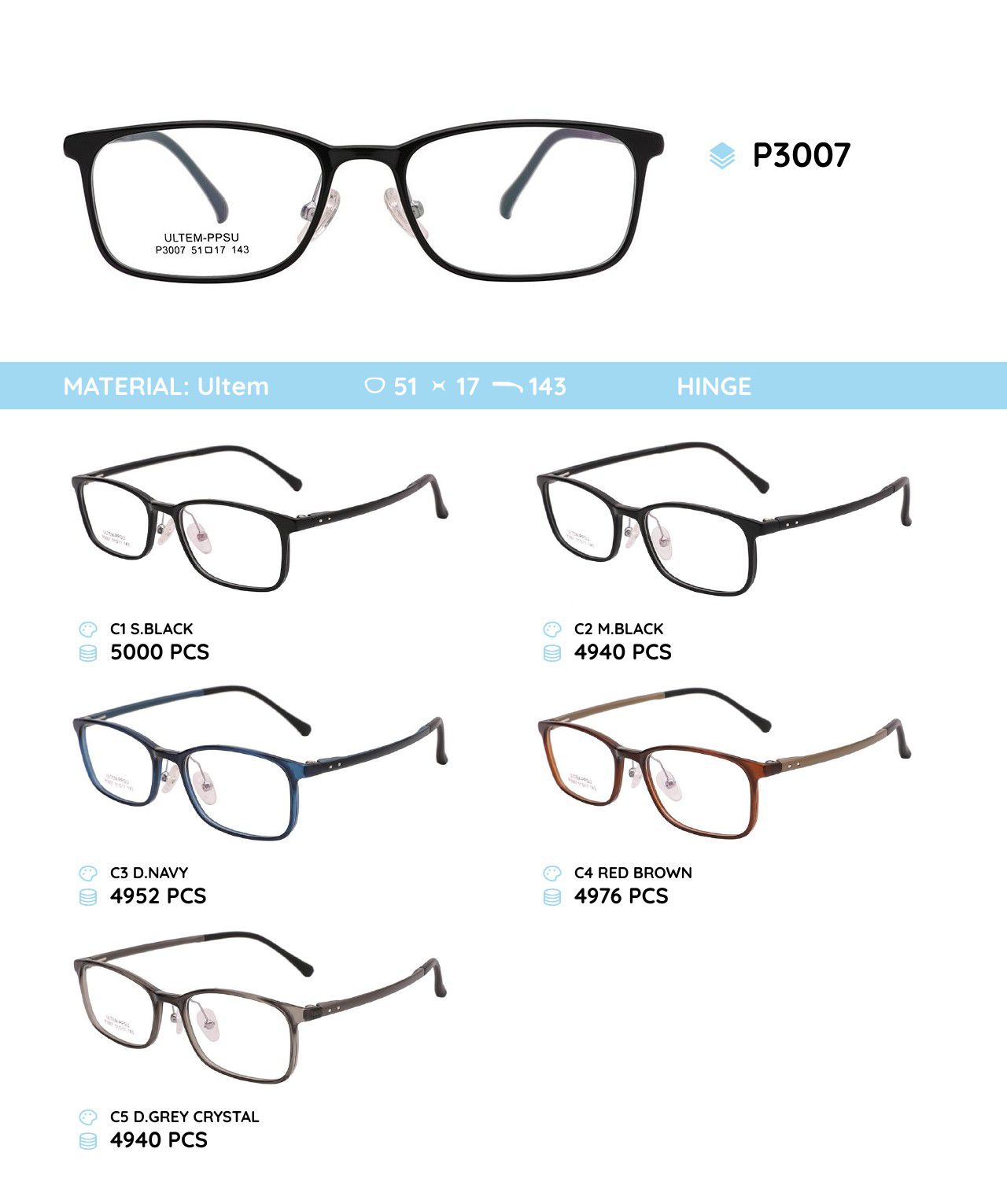 Plastic Ultem eyeglasses frame P3007