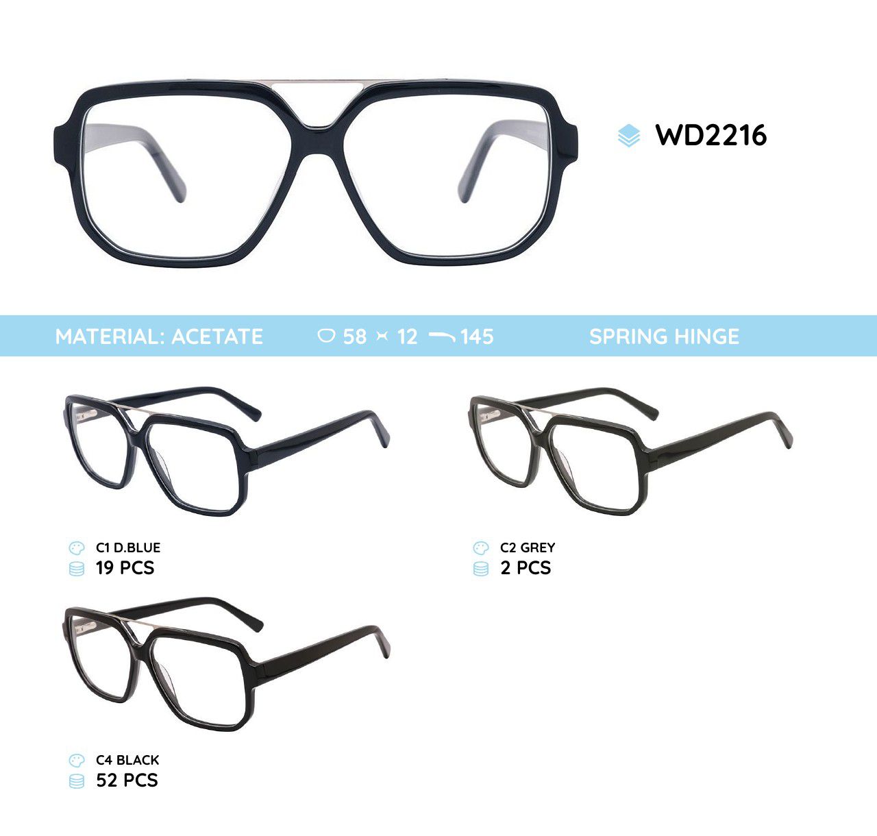 Plastic acetate eyeglasses frame for men WD2216