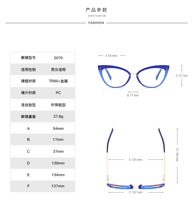 - Size: lens width - 54 mm, bridge - 17 mm, temple length - 139 mm