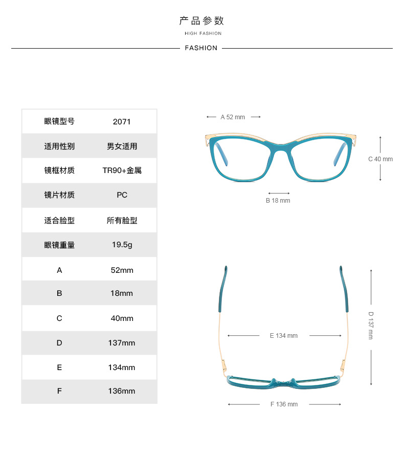 - Frame material: TR90 plastic