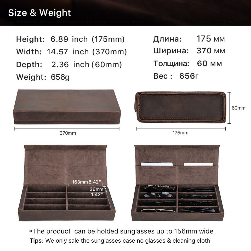 Футляр для очков и солнцезащитных очков из натуральной кожи на 8 отсеков CF4013
