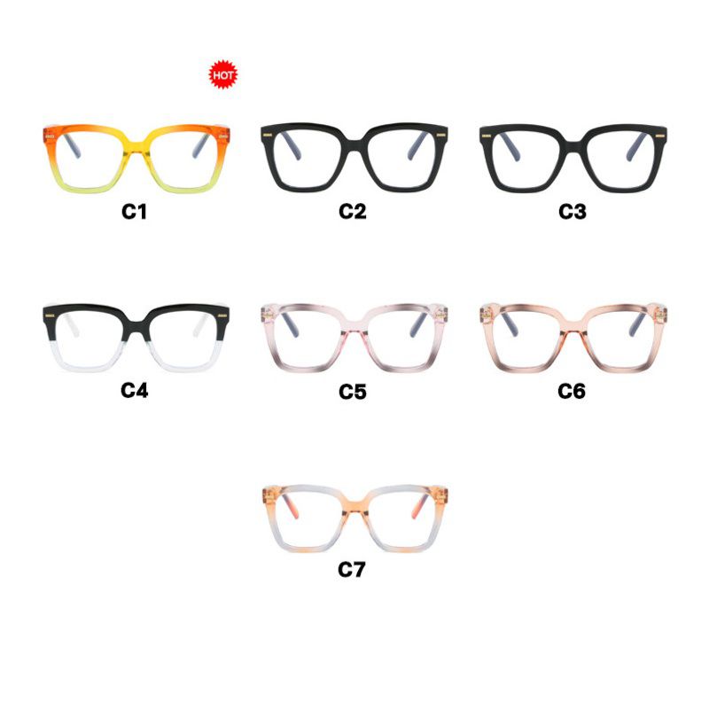 A collection of fashionable Blue Ray Cut eyeglass frames featuring a modern, minimalist style. These lightweight, comfortable, and durable frames are suitable for both blue light-blocking and vision correction lenses. The selection includes a variety of shapes: round, oval, rectangular, and a combination of both and a wide range of colors, from classic black and clear to vibrant shades. These frames complement any look, are suitable for everyday wear, work, and school, and thanks to high-quality materials, they provide durability and comfort.
