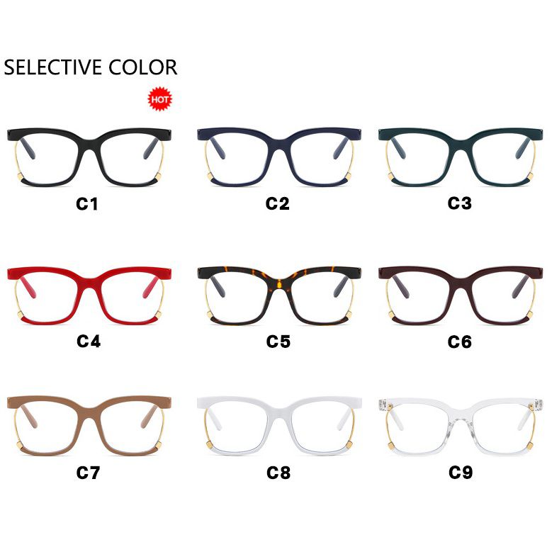 A collection of fashionable Blue Ray Cut eyeglass frames featuring a modern, minimalist style. These lightweight, comfortable, and durable frames are suitable for both blue light-blocking and vision correction lenses. The selection includes a variety of shapes: round, oval, rectangular, and a combination of both and a wide range of colors, from classic black and clear to vibrant shades. These frames complement any look, are suitable for everyday wear, work, and school, and thanks to high-quality materials, they provide durability and comfort.