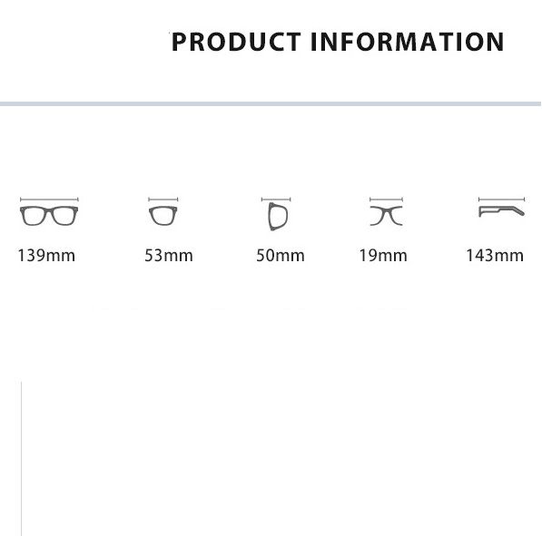 • Size: lens width - 53 mm, bridge - 19 mm, temple length - 143 mm