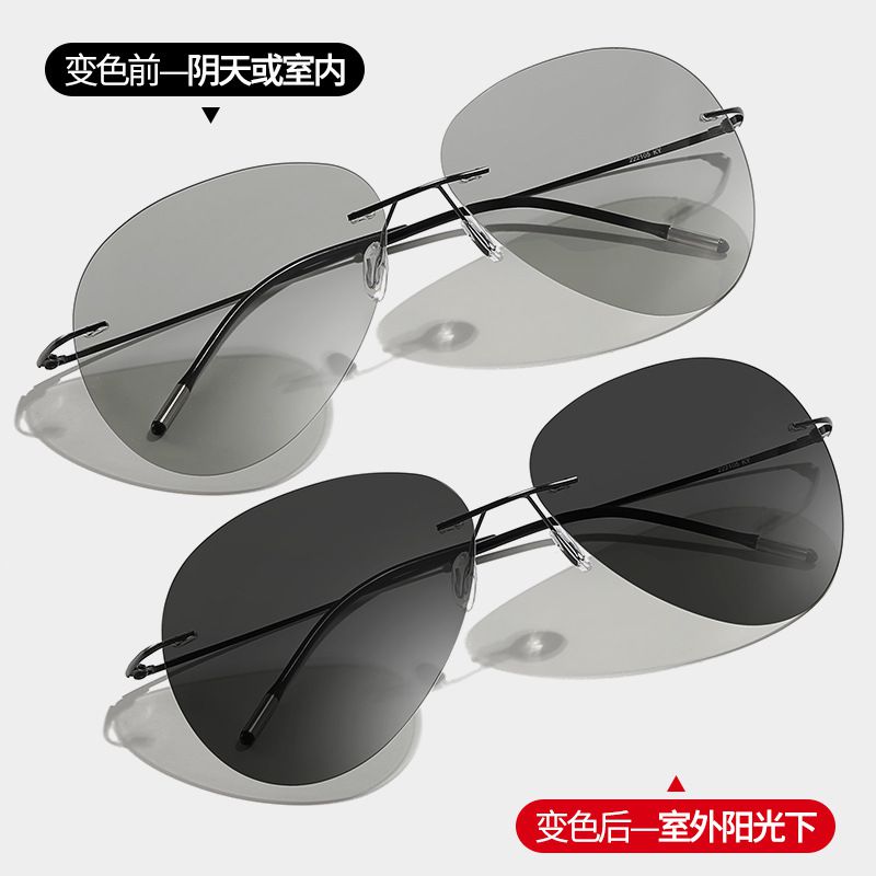 Polarized photochromic metal rimless sunglasses KY222105 KY222105 Black lens 黑片 BLACK 黑 ¥ 18.90 В наличии