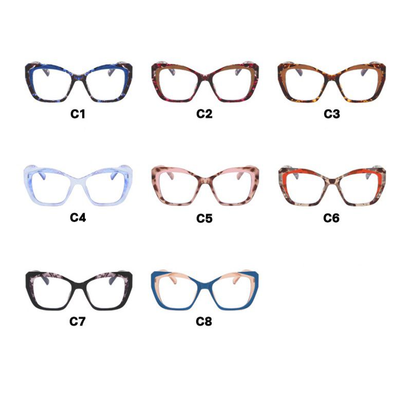 A collection of fashionable Blue Ray Cut eyeglass frames featuring a modern, minimalist style. These lightweight, comfortable, and durable frames are suitable for both blue light-blocking and vision correction lenses. The selection includes a variety of shapes: round, oval, rectangular, and a combination of both and a wide range of colors, from classic black and clear to vibrant shades. These frames complement any look, are suitable for everyday wear, work, and school, and thanks to high-quality materials, they provide durability and comfort.