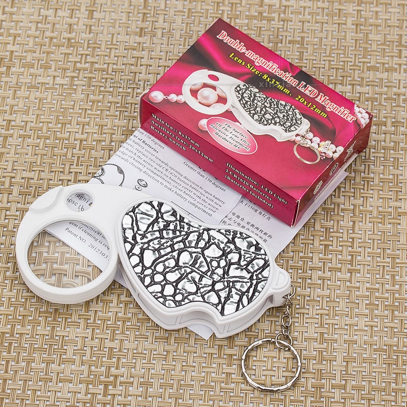 Лупа двойная увеличительная складная с подсветкой MANGO 6901/6901A, 4X/8X-кратная