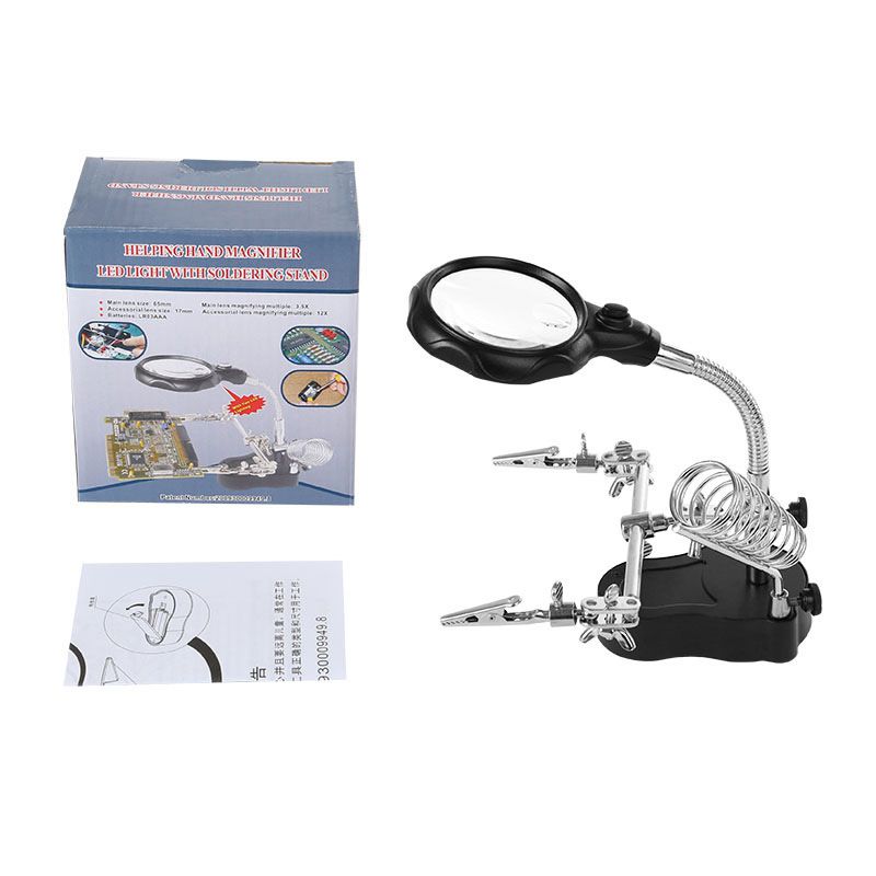 The desktop magnifier is a multifunctional device, indispensable for soldering, assembling small parts, jewelry work and other tasks that require high precision. Equipped with several magnification levels, it allows you to examine even the tiniest elements in detail. The main feature of the model is the locking holders that provide stable fixation of objects, freeing your hands for work. The kit includes replaceable attachments that expand the functionality of the device. Thanks to the robust design and stable base, the magnifier is reliable and easy to use. The perfect choice for craftsmen, radio amateurs and jewelers who need a precision tool for detailed processing.