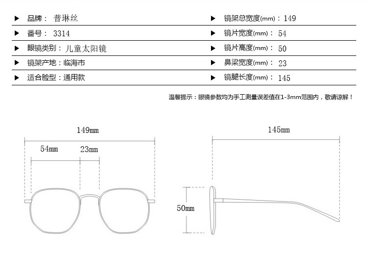 • Размер: ширина линзы - 54 мм, мост - 23 мм, длина заушника - 145 мм, общая ширина - 149 мм, высота линзы - 50 мм