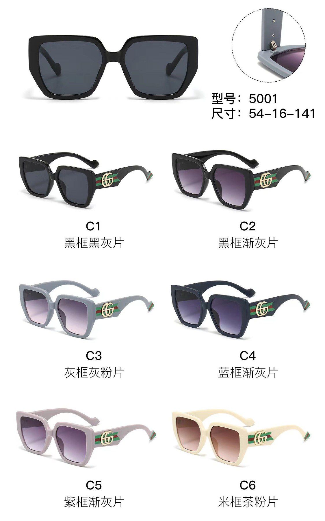 Солнцезащитные пластиковые очки из поликарбоната с металлическим шарниром 5001W