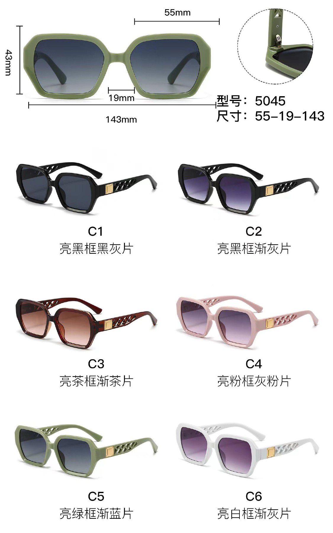 Солнцезащитные пластиковые очки из поликарбоната с металлическим шарниром 5045W