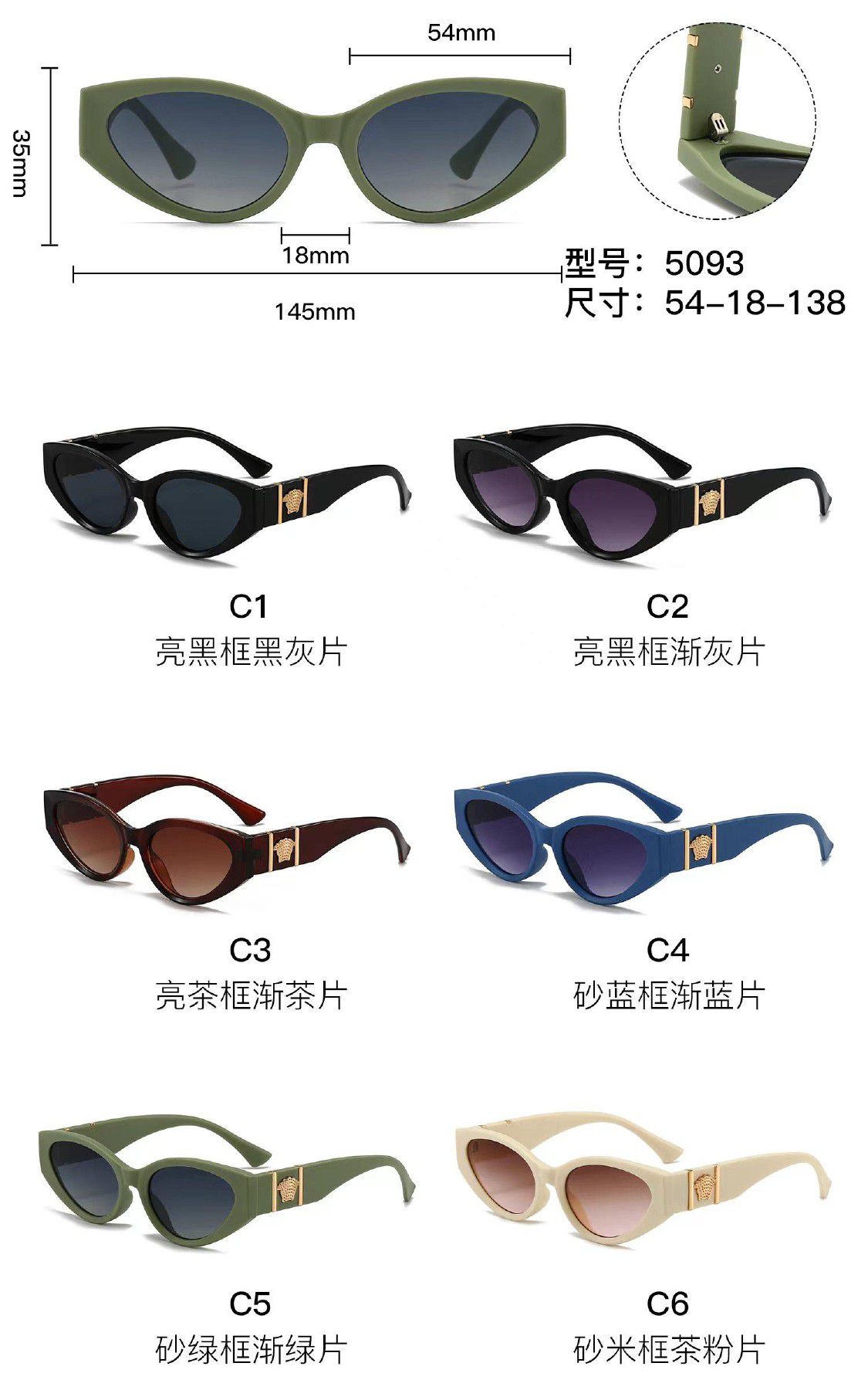 Солнцезащитные пластиковые очки из поликарбоната с металлическим шарниром 5093W
