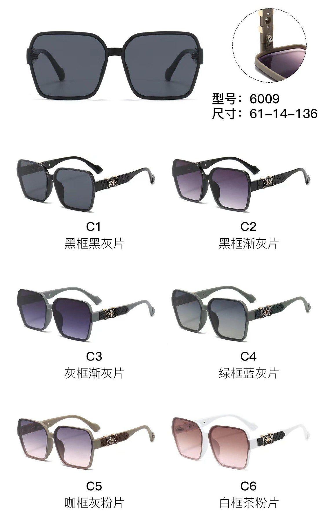 Солнцезащитные пластиковые очки из поликарбоната с металлическим шарниром 6009W