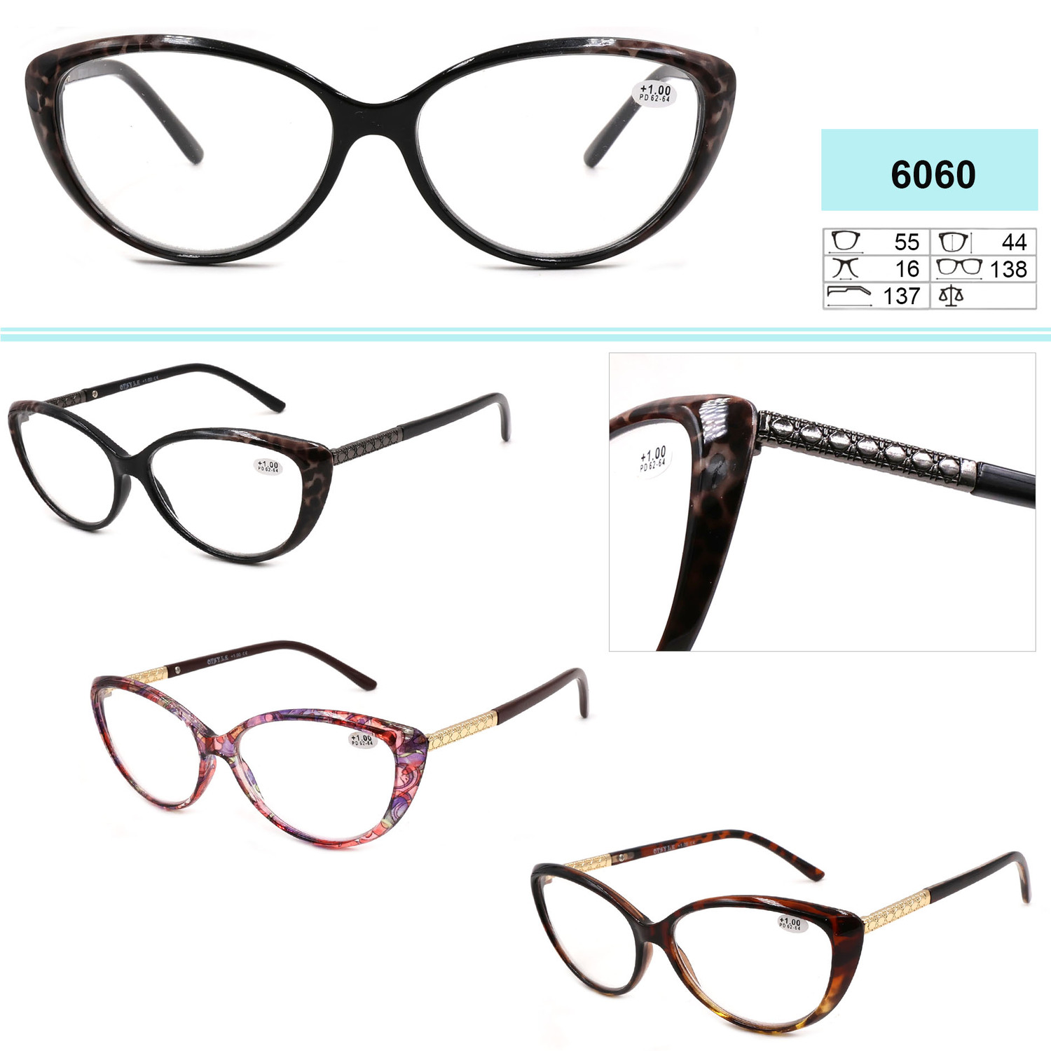 Очки женские в пластиковой оправе Otstyle 6060, +1,00 до +4,00 , -1,00 до +4,00 D 6060 mix 混 -1.5 ¥ 5.10 В наличии