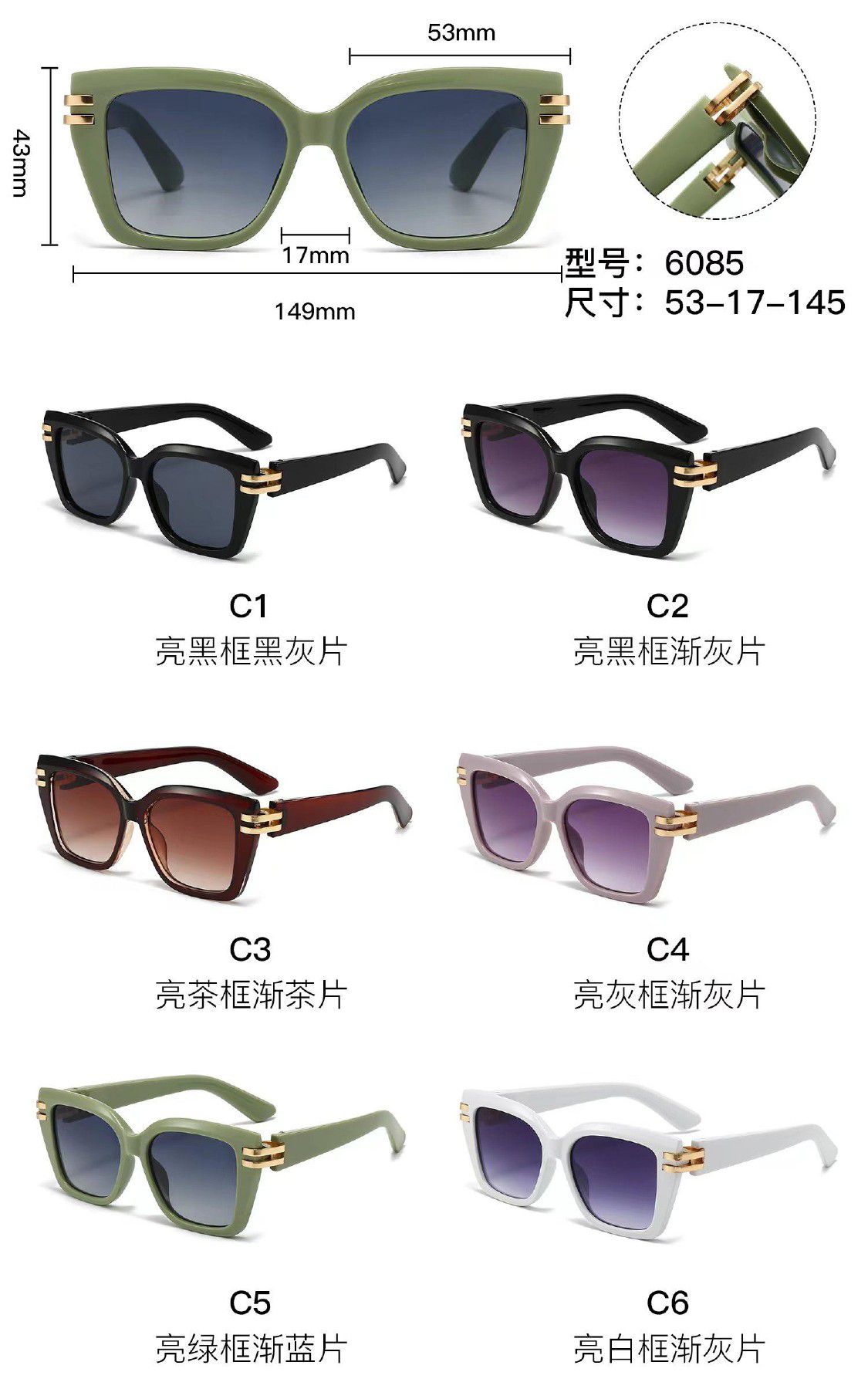Солнцезащитные пластиковые очки из поликарбоната с металлическим шарниром 6085W
