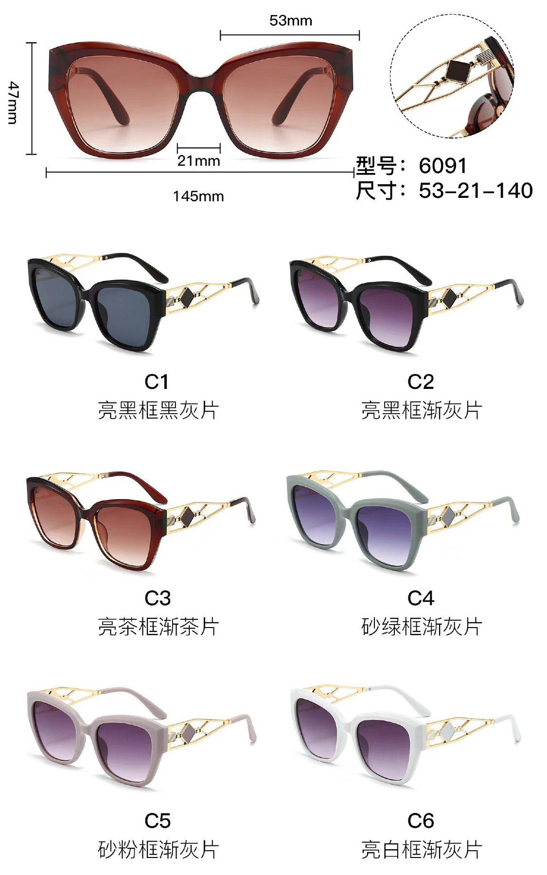 Солнцезащитные пластиковые очки из поликарбоната с металлическим шарниром 6091W