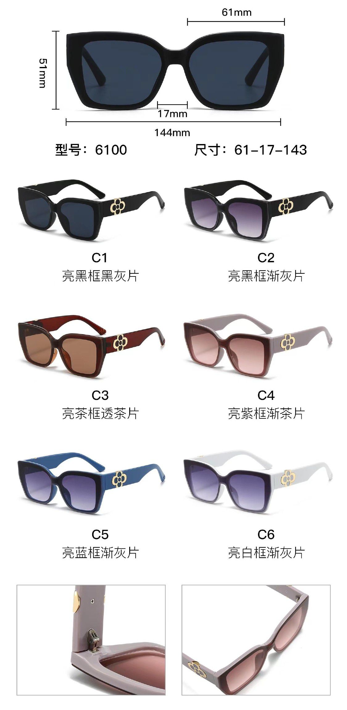 Солнцезащитные пластиковые очки из поликарбоната с металлическим шарниром 6100W