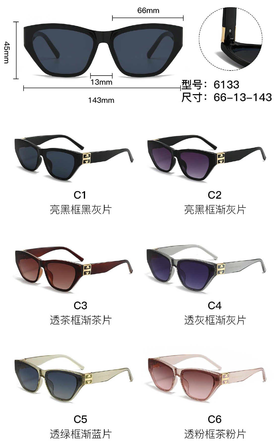 Солнцезащитные пластиковые очки из поликарбоната с металлическим шарниром 6133W