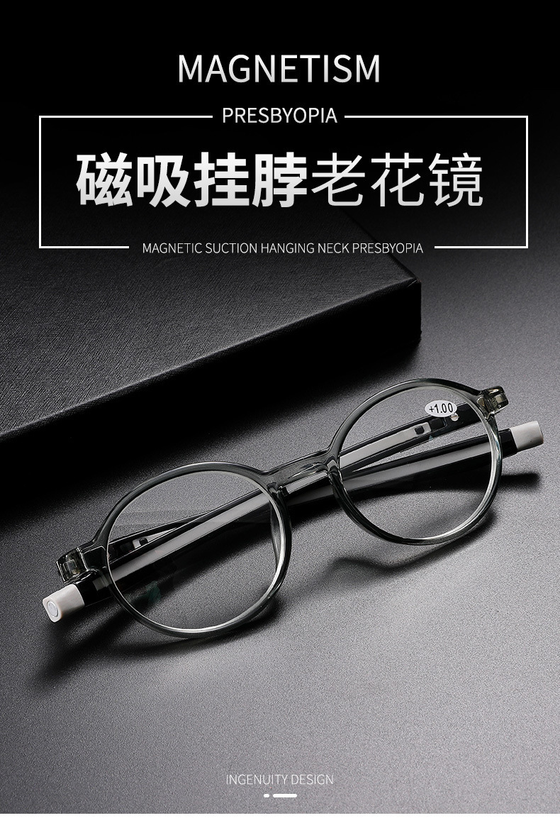 Очки пластиковые для чтения складные на магните 9001-圆框 , диоптрии от +1.00 до +4.00, РМЦ=62-64