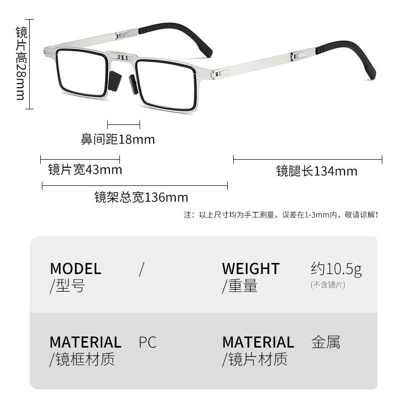 Очки металлические для чтения, складные, с футляром, c защитой Blue ray cut, диоптрии от +1.00 до +4.00, 9737-GT