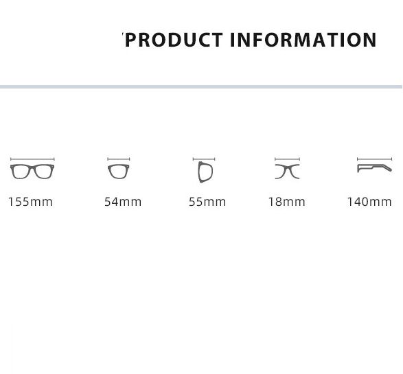 - Размер: общая ширина -155 мм, ширина линзы - 54 мм, высота линзы - 55 мм, мост - 18 мм, длина заушника - 140 мм