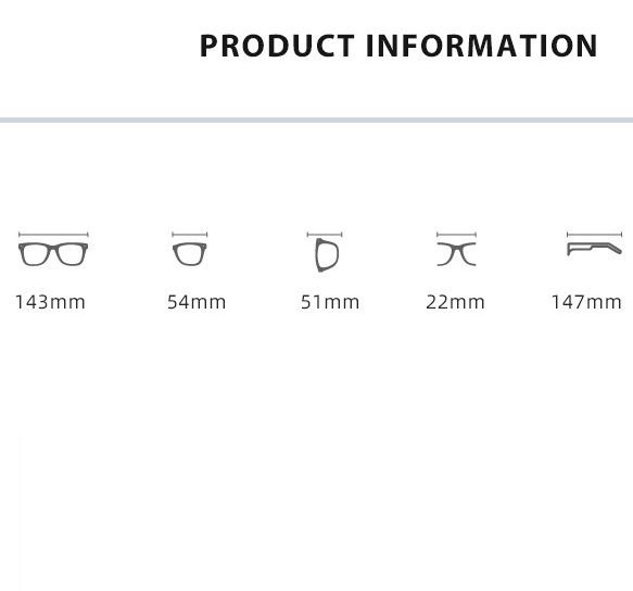 • Размер: общая ширина -143 мм, ширина линзы - 54 мм, высота линзы - 51 мм, мост - 22 мм, длина заушника - 147 мм