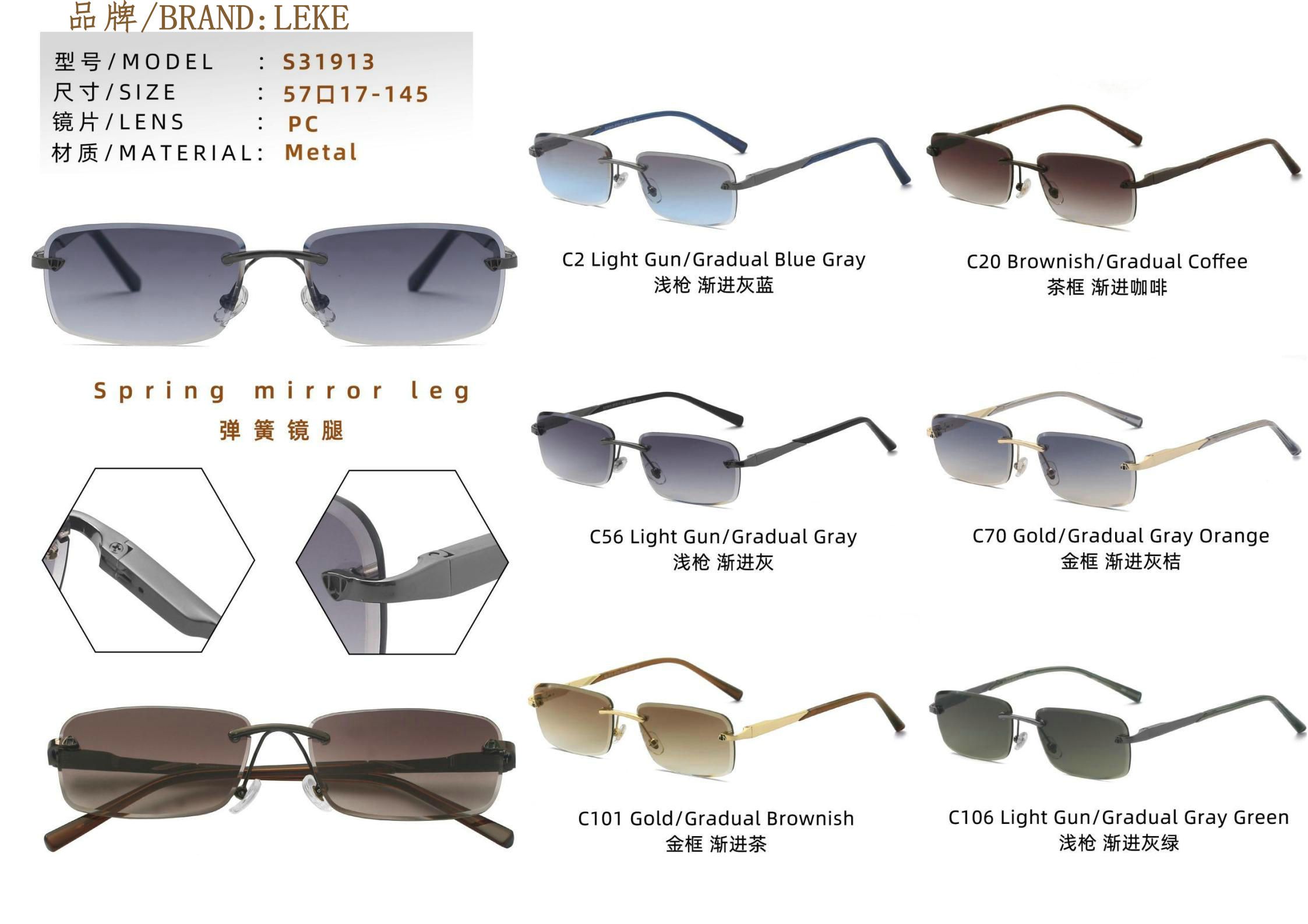 Солнцезащитные поляризационные металлические безободковые очки с флексом Leke L31913PC