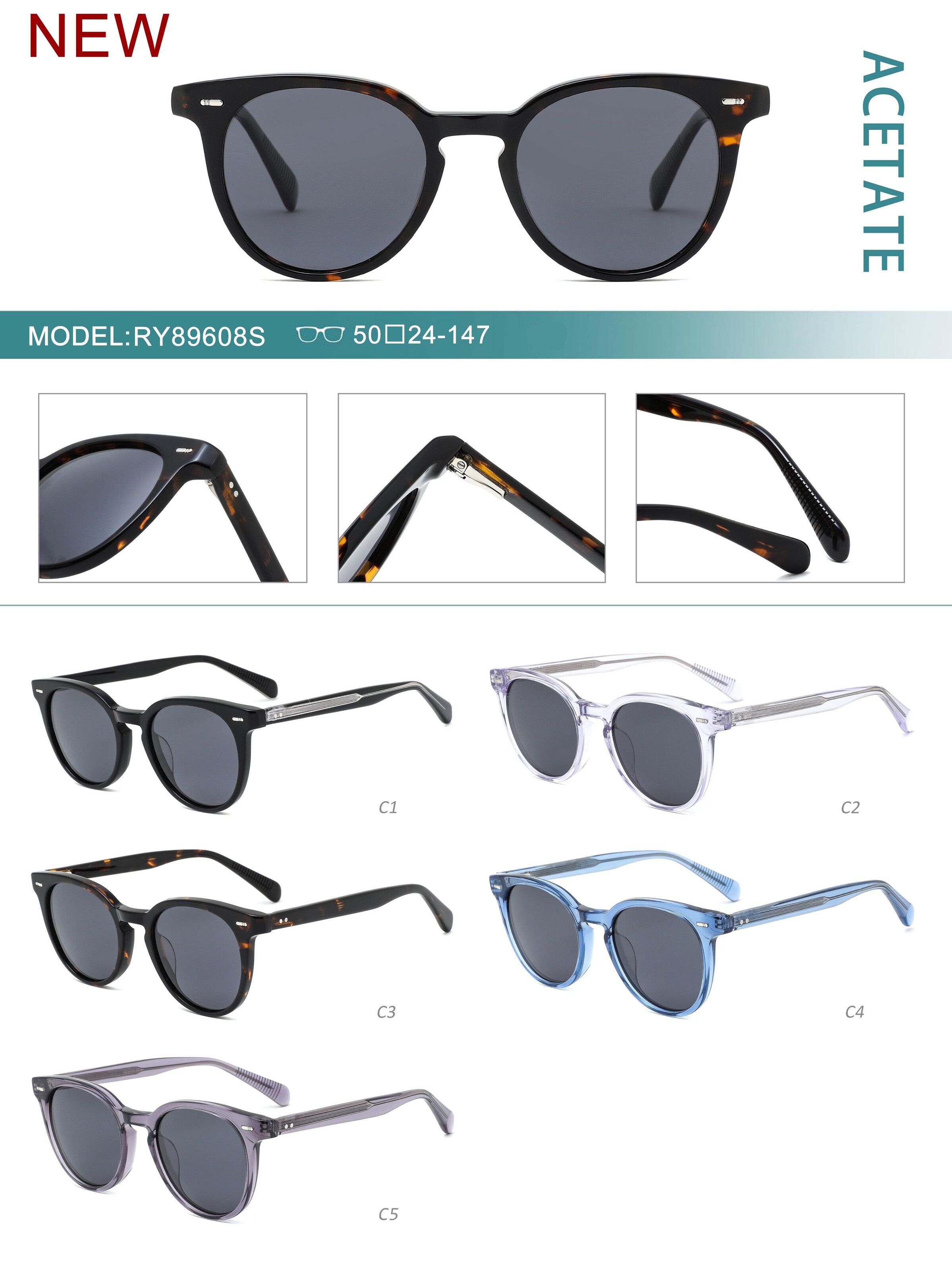 Солнцезащитные поляризационные пластиковые очки из ацетата, с флексом RY89608S