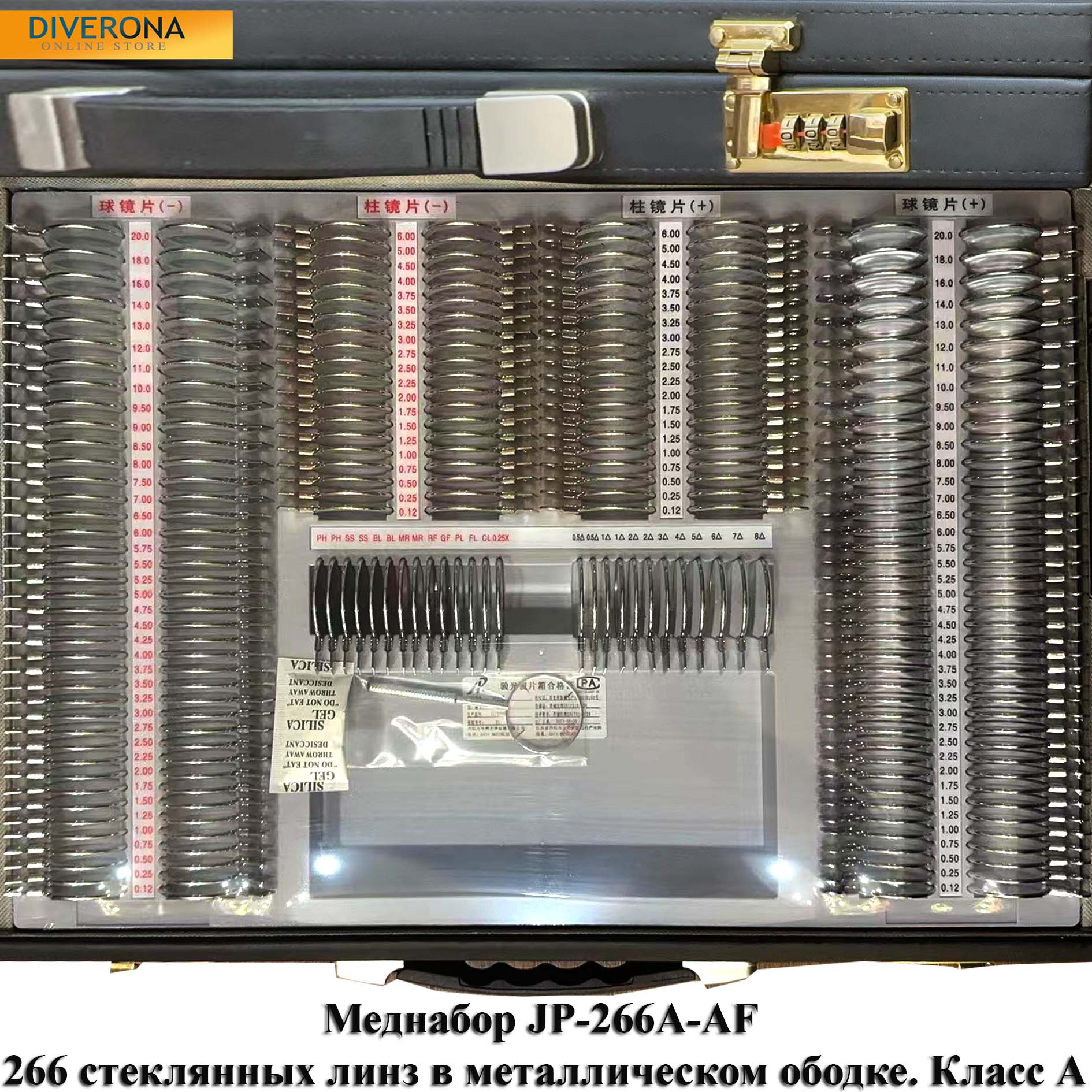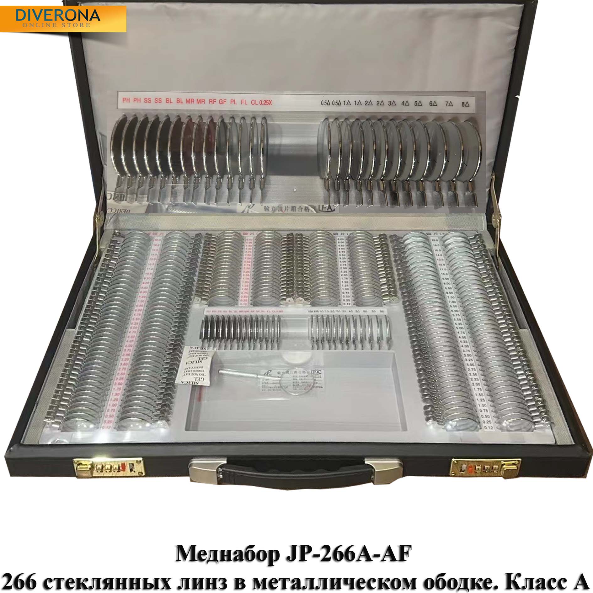 Sets of trial eyeglass lenses with rims consisting of 266/232 lenses are intended for corrective glasses selection by the method of subjective testing, as well as for carrying out a number of ophthalmologic studies