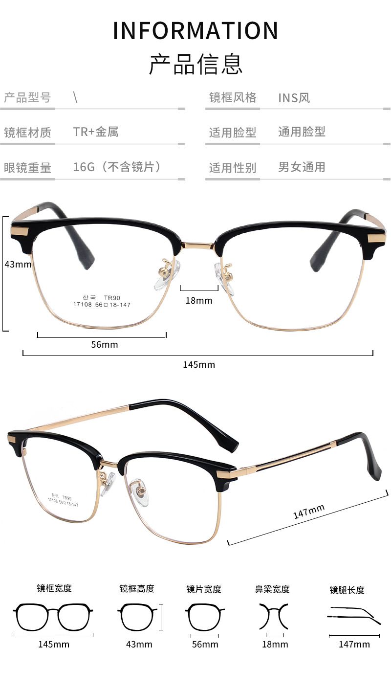 - Материал оправы: металл + пластик TR90