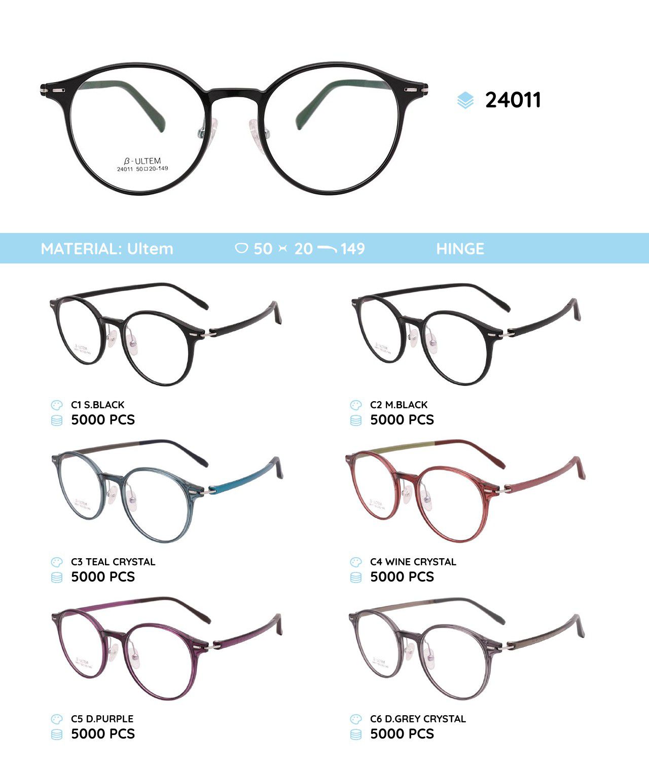 Оправа для очков пластиковая из материала Ultem 24011